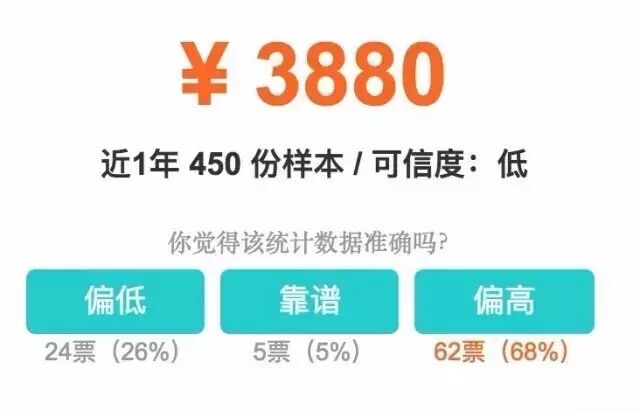 当然,这只是一份不完全统计,样本量并没有达到足够大的量,在关于数据准确性的调查中,有68%左右的票数显示平均工资数据偏高。