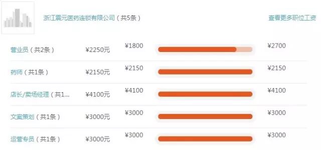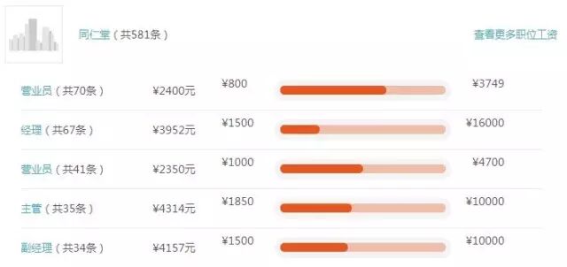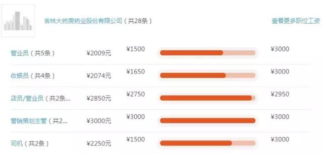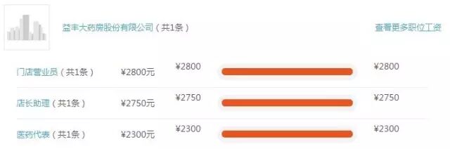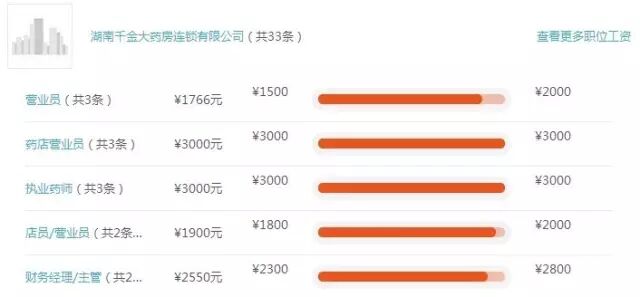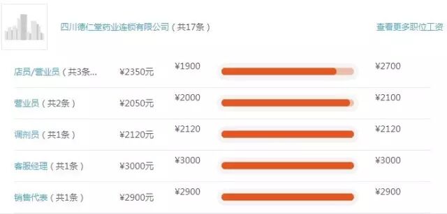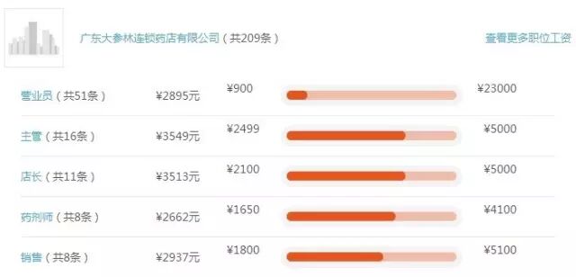 下面,我们从“职业圈”里统计了20家知名连锁药店各岗位的工资待遇。这个数据是根据企业发布的招聘信息里公布的薪资,以及在企业工作过的员工分享的工资综合计算的平均数值。