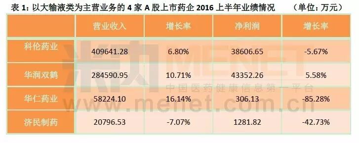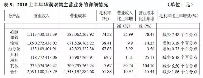 2016 年上半年,华润双鹤实现营业收入28.46 亿元,同比增长10.71%,实现净利润4.34亿元,同比增长5.58%。华润双鹤表示,输液业务继续受各省新标尚未全部执行及限抗限输及辅助用药限制等影响,收入同比下滑9.8%,但得益于产品结构调整和本年度成本调控的成果,输液领域毛利率增加了3.19%。