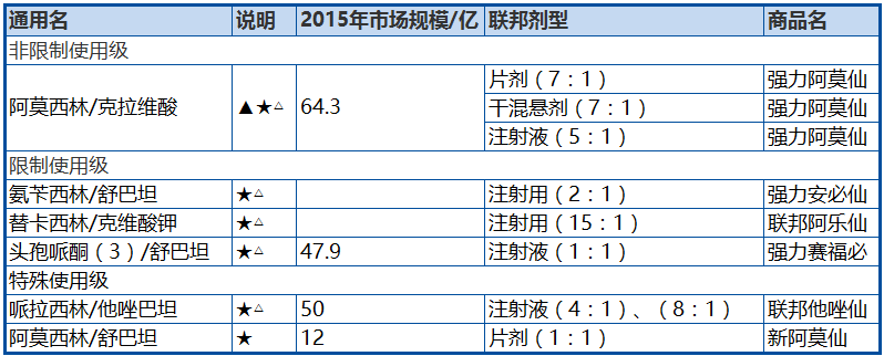 表4、联邦β-内酰胺酶抑制剂类抗生素制剂产品一览表