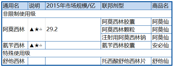 资料来源: 2011年卫生部《抗生素分级管理目录(征求意见稿)》,各个省份有所差异。