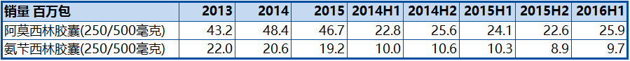 表8、2013年以来公司核心固体制剂产品阿莫仙、安必仙销量数据