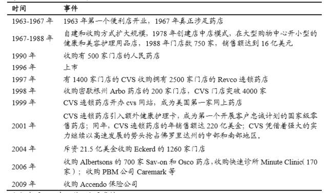 相信大家都对前段时间老百姓大药房B2C解散药品电商的消息有所耳闻,事件最终以老百姓大药房出面澄清,并表示公司将同时致力于发展“O2O”“B2C”两个方向而得以结束。既然大家对这个话题饶有兴趣,笔者结合国内已上市的药店一心堂、益丰药房、老百姓及其对标的美国企业CVS(西维士药店,全美最大的连锁药店),做一个中国式药店行业发展方向的简单分析。抛砖引玉一家之言,不妥之处欢迎拍砖!药店作为竞争相对市场化的行业,在行业发展的过程中,已逐渐从专业药店向个人健康管理平台方向转变。从中国现有连锁零售药店的战略和经营趋势来看,中国正在向美国药店学习,而且未来可能将美国模式本土化,所以通过分析美国药店行业和龙头药店的发展史,我们可以推测中国药店未来的发展趋势。从现状看,美国是全球最大的药品生产和销售使用大国,年药品消费额超过4000亿美元,美国实行医药分家,医院只设住院药房,不设门诊药房,约70%左右的药品是在零售终端销售。除了住院药房,现在的美国药店分为四种:独立药店、连锁药店、超市、综合商场。其中大型药店连锁企业是美国零售诊所的主导者,医疗和日用品结合的药店成为主要的商业模式,在美国医疗保健体系中发挥重要作用,也给人们的日常生活带去更好的体验和便利。注:1963-2009年CVS的发展和并购历史,数据来源于兴业证券和百度资料1、行业集中度不断提升,公司伺机快速扩张,提高整合运营能力自1990年起,随着行业竞争激烈,药店经营难度加大,CVS的管理层抓住并购机遇,实现快速弯道超车。新店建设方面,CVS对选址有专门的测量系统,通过输入各种市场参数(比如处方量、竞争对手情况、人口发展趋势、交通流量等)对要进入的市场进行模拟分析后,系统会得出这个区域的市场容量以及最佳店址的位置。并购方面,CVS采取互补性并购,以区域龙头药店为主,且CVS每一次大型并购均做大量的整合工作,如门店的装潢、换址、店员的培训,CVS还将企业理念、价值观、运营体系输出到被收购方,在最短的时间完成整合。连锁药店并购或者新建有大量的资本支出和产权变更,对于整合和资金运营能力要求较高。CVS的大量扩张中也遇到这个问题,兼并整合中很多店面关闭、改造以及新建,产权问题复杂,资金需求也较高,为了减少资本支出,CVS采取了“建设-销售-回租”的战略。通过售后回租模式,使得CVS每年在每个门店上能够节省4-6万美元。在较灵活的资本运营情况下,虽然公司持续扩张,但公司的经营性现金流也一直较为稳定,资产负债率与自建门店为主的Walgreens(沃尔格林,世界上最大的食品和药品零售企业之一)相差不大,一直稳定保持在50%左右。在具体的产品营销上,CVS发展了大量的非药品类、供应链严格管理的商品,同时公司还着重发展部分自主品牌,以优质产品塑造公司的良好品牌形象。在CVS,自有品牌产品销售额已经占据总销售额的百分之十几,公司未来每年还将推出新的自有品牌项目,以良好的品类管理能力维持公司的盈利水平。老百姓公司已构建了覆盖全国15个省、自治区及直辖市、73个城市,共计999家门店的营销网络。未来三到五年,公司将借助资本力量,通过自建并购等方式不断加大优势区域门店密集度,同时公司还将寻求全国异地扩张,收购各地龙头连锁药店,力争打造华南、华中、华东、华北和西北五个年销售额在10-20亿元的大型营销区域网络。而其他几家已上市的连锁药店(一心堂、益丰药业)的老板也都深知利用资本力量的重要性,都在加速外延并购,从一心堂上市两年内并购和停牌可见,行业并购标的众多,未来行业内的并购热情也将不断上涨。中国药店1.0时代已经到来,集中化趋势明显,行业市场空间变大、集中度提高、产业链地位提升利好大型连锁药店。1)医药分家将推动占比80%的处方药流向零售终端,药店行业空间变大;2)行业竞争激烈、电商时代到来使得小规模药店盈利能力下降,如此一来将催生众多并购机会,上市连锁药店借助资本力量预期将强者更强,充分享受并购盛宴;3)医药行业整体存在降价压力,而药店凭借终端地位能将降价压力转移,并可能在产业链中分得更高比例的利润,从而能保持持续盈利的能力。从中国前十大连锁药店情况看,近几年各药店的销售规模均稳步提升,门店数量也逐步增加。药店1.0时代,各家企业的竞争核心在于并购能力、整合经营能力、对上游药企的议价能力。行业变局下,未来谁可能成为中国疆域内崛起的CVS?